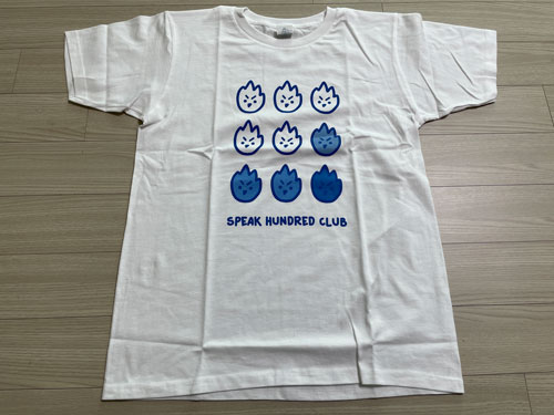아, 그리고 불꽃 선물 보여드리기로 했죠. 불꽃은 매일 스픽을 공부하면 1개씩 켜져요. 100일 연속으로 불꽃을 켜면 받을 수 있는 특별한 선물은 바로 스픽 티셔츠! 불꽃 얼굴이 귀엽고, 9개의 불꽃 아래에는 SPEAK HUNDRED CLUB 글씨가 있어요. 엄마가 너 입으라고 주셔서 저는 잠옷으로 입고 있습니다.